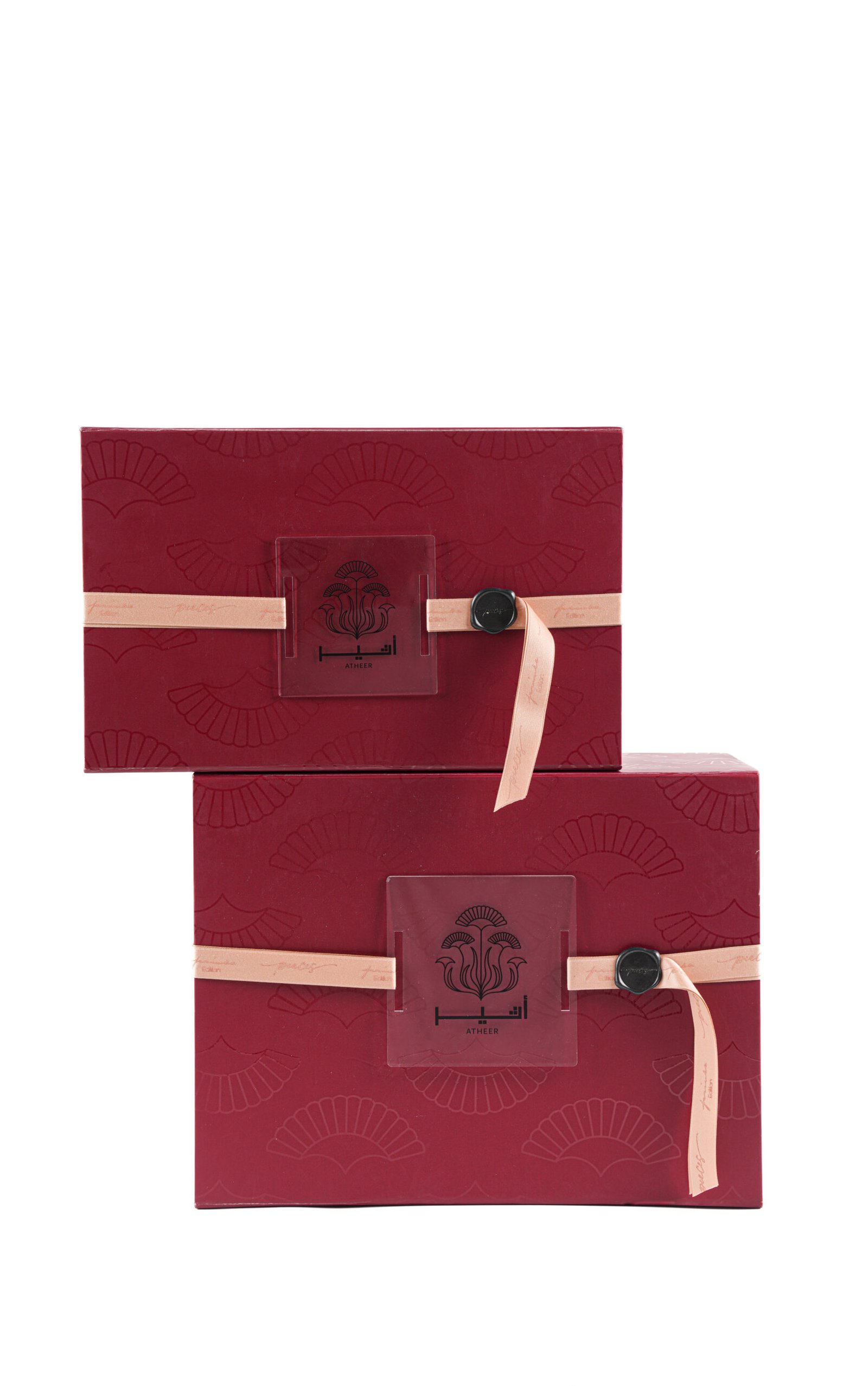 ATHEER Collection is a translation of luxury that caters to the refined taste of our distinguished clients, where exquisite craftsmanship meets captivating fragrance. Its name embodies purity, elegance, and sophistication, reflecting the essence of the experience it offers. Each piece is crafted from premium ceramic, exclusively designed for us, to showcase a unique identity in design. The fragrance takes you on a journey, starting with the refreshing notes of lemon and grapefruit, followed by the warmth of red fruits, rum, and apple, settling into a deep embrace of soft rhubarb, velvety caramel, and enchanting vanilla. ATHEER is more than just a collection; it is an experience that blends art and refinement, leaving an everlasting impression. It is the perfect gift for those who hold a special place in your heart ,your dearest ones who deserve a touch of elegance and distinction in every moment.